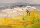 在山水主题的油画创作中,他并未拘泥于再现自然的表象,而是以中国山水画“可行、可望、可游、可居”的观照方式,构建流动而开放的视觉结构。画面中,色彩的铺陈与光影的层叠并非单纯的形式实验,而是服务于整体气韵的生成,使油画这一西方媒介焕发出内敛、含蓄而悠远的东方审美意境。正是在这种“以中驭西”的探索中,他不断拓展着油画民族化的表达边界。